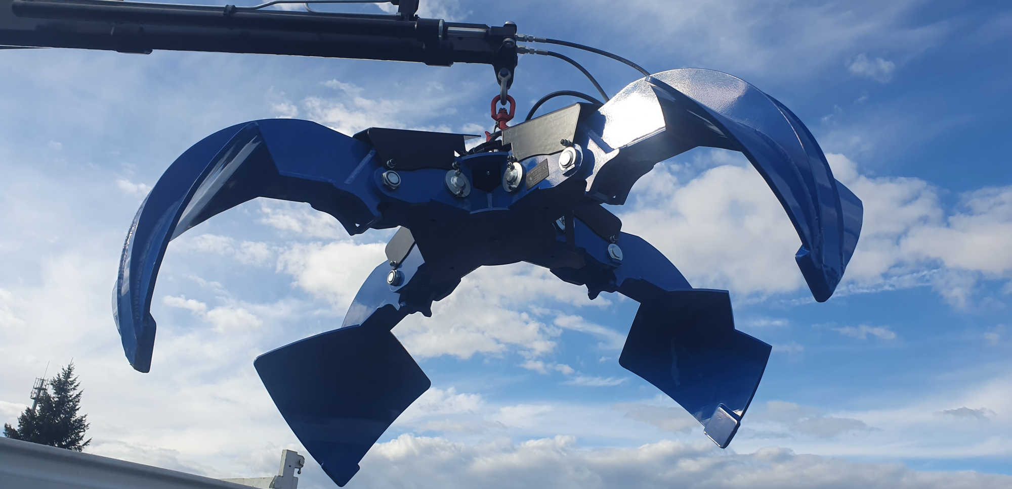 Specjalna konstrukcja umożliwia montaż chwytaka nie tylko do najprostszych żurawi HDS, ale również do wszystkich typów żurawi zakabinowych (składanych w „Z”).